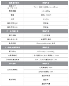 - 監測:同步、即時顯示心電、血氧飽和度、脈搏